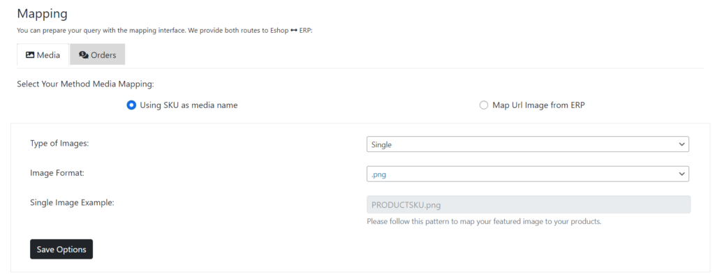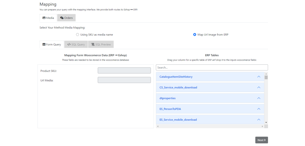 product_sku: As soon as the user locates from the erp table the field responsible for the product sku, he drops it in this field.